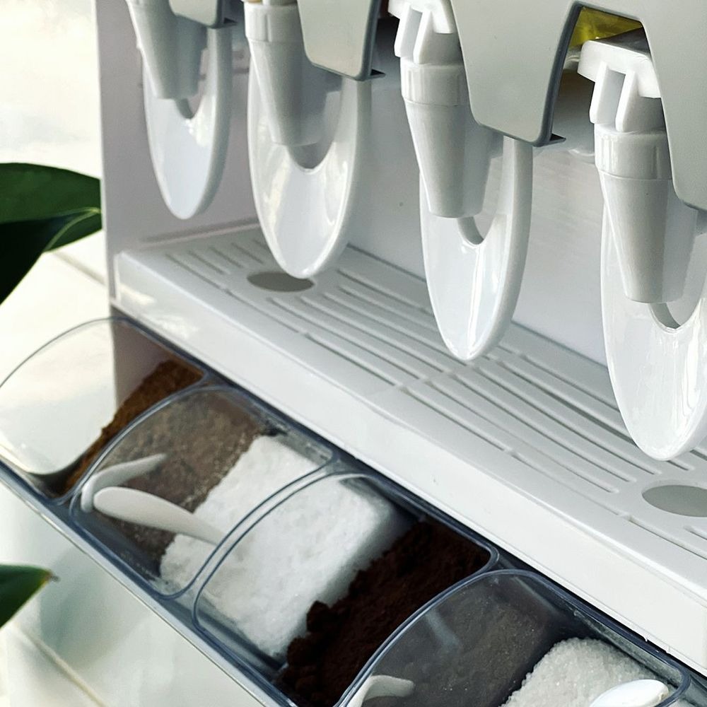 Minden résznek megvan a maga helye - az olajtól és az ecettől kezdve a són, a borson át a kurkumáig. Az átlátszó tárolóknak köszönhetően mindig tudja, mi van benne.