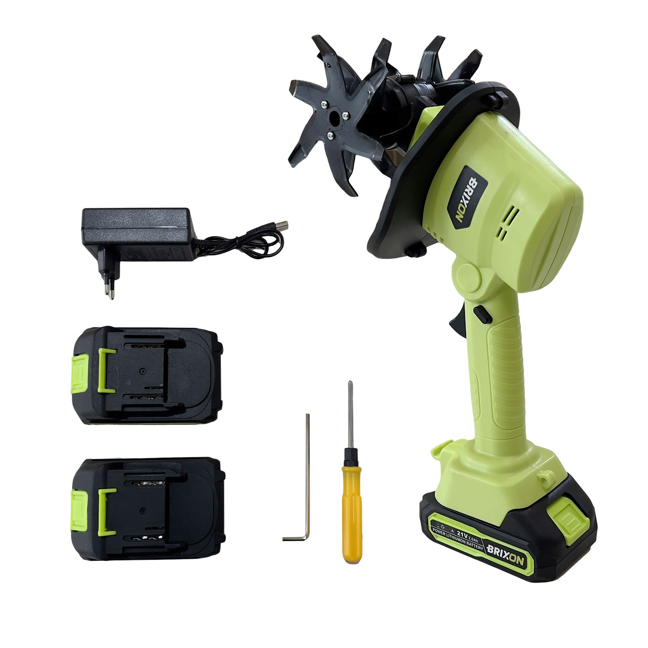 A csomag tartalma: Kézi akkumulátoros mini kultivátor (motoros egység)