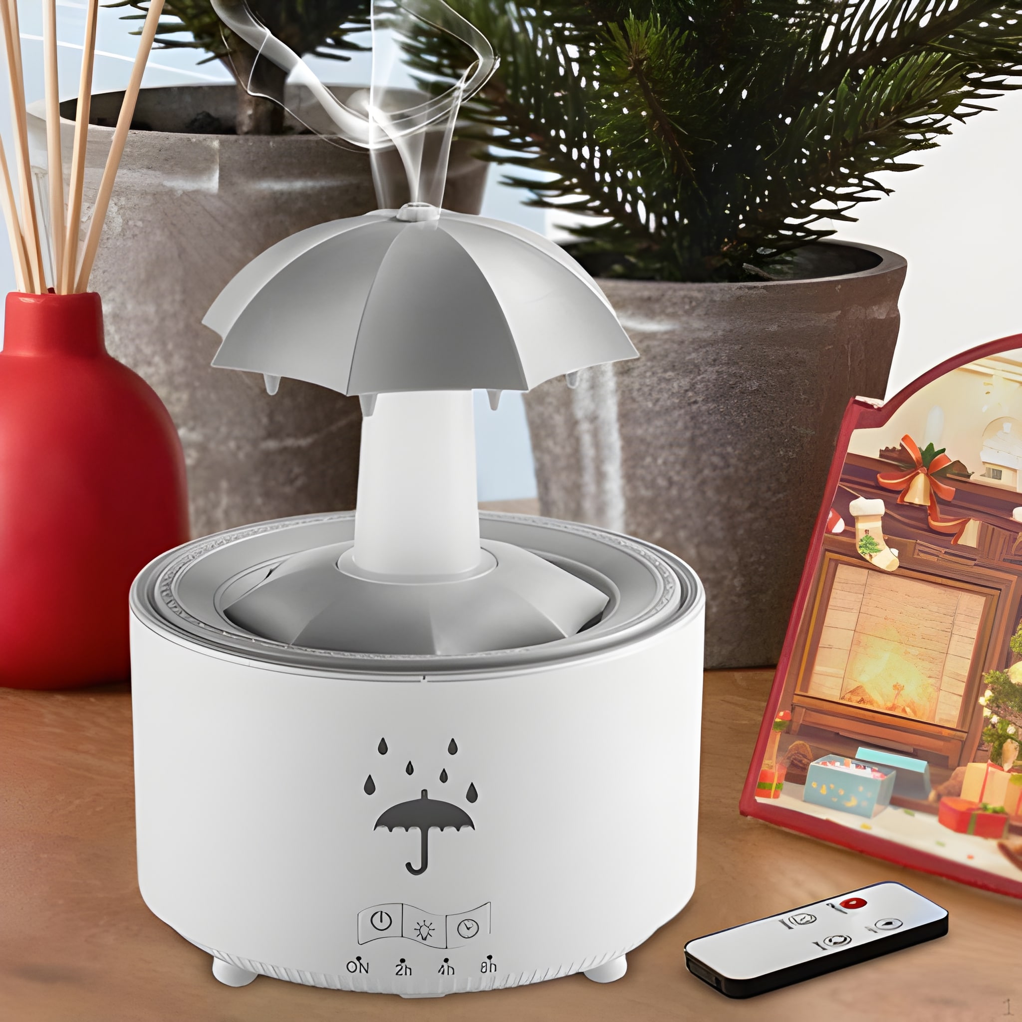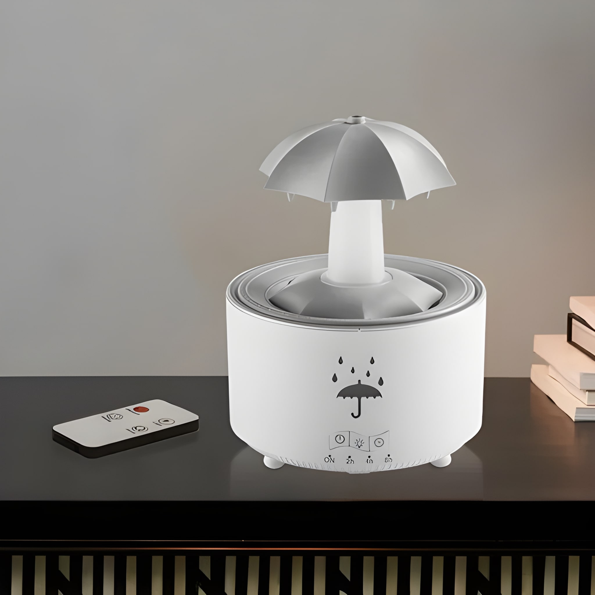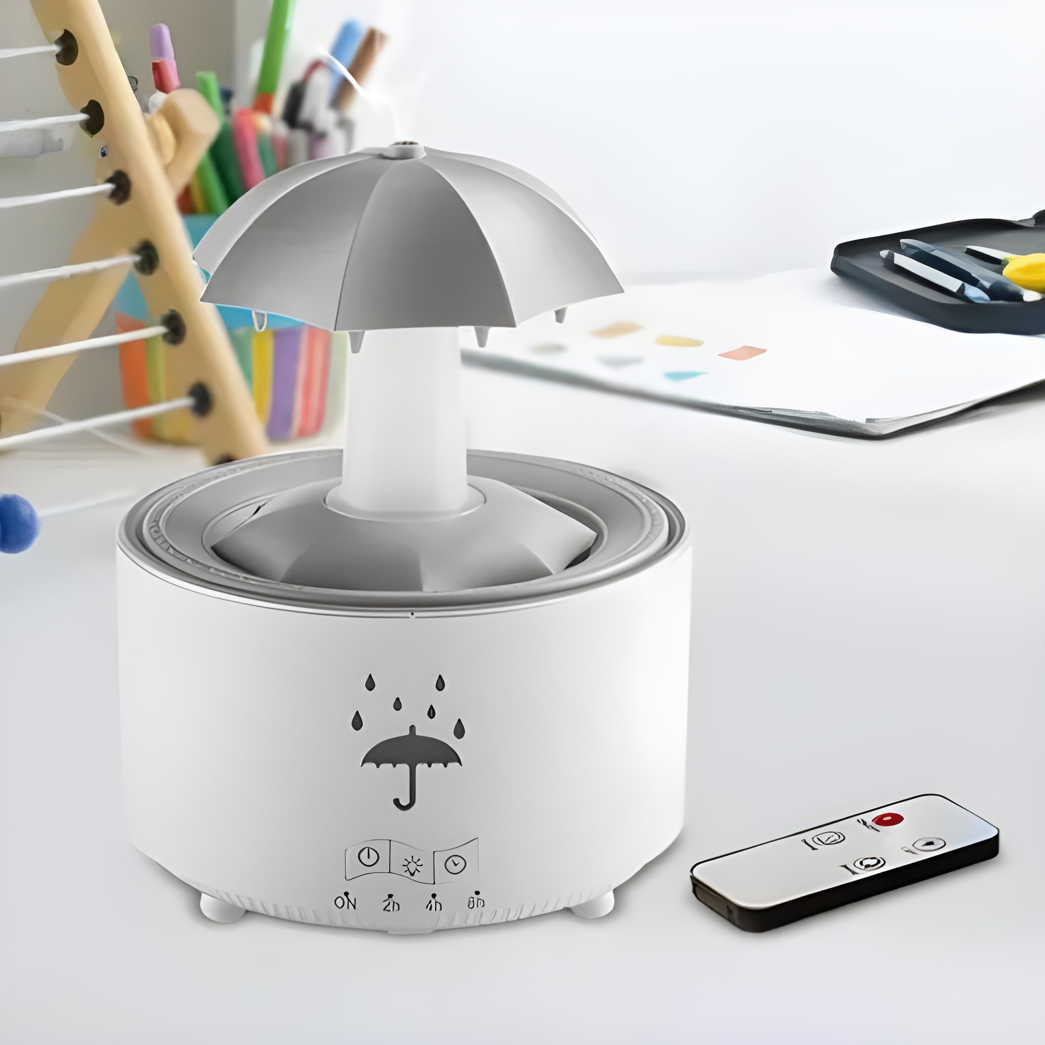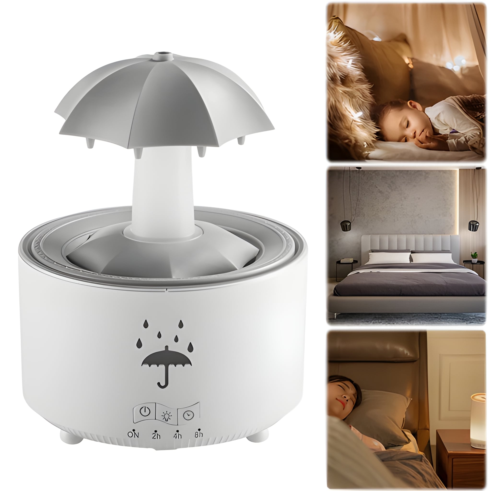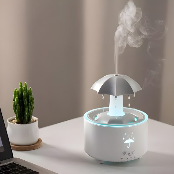 Nézze, ahogy a vízcseppek lecsúsznak az esernyőn, és ultrafinom ködöt képeznek. A gyengéd esőhatás segít csökkenteni a stresszt, megnyugtatja az elmét és elősegíti a jobb alvást. Ideális mindenkinek, aki egy pillanatnyi nyugalomra vágyik.
